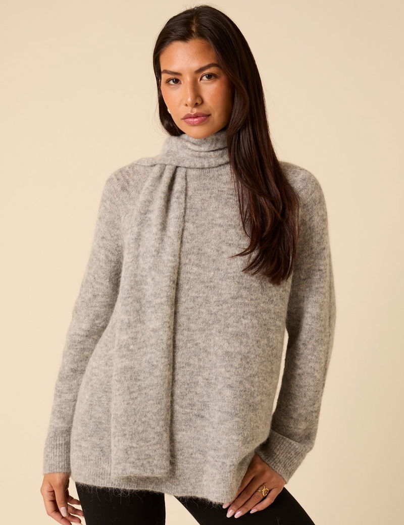 Grey Oversized Scarf Jumper