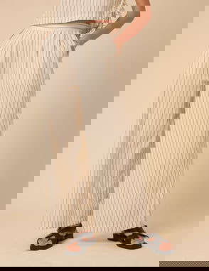 Grey Pinstripe Tailored Wide Leg Trousers