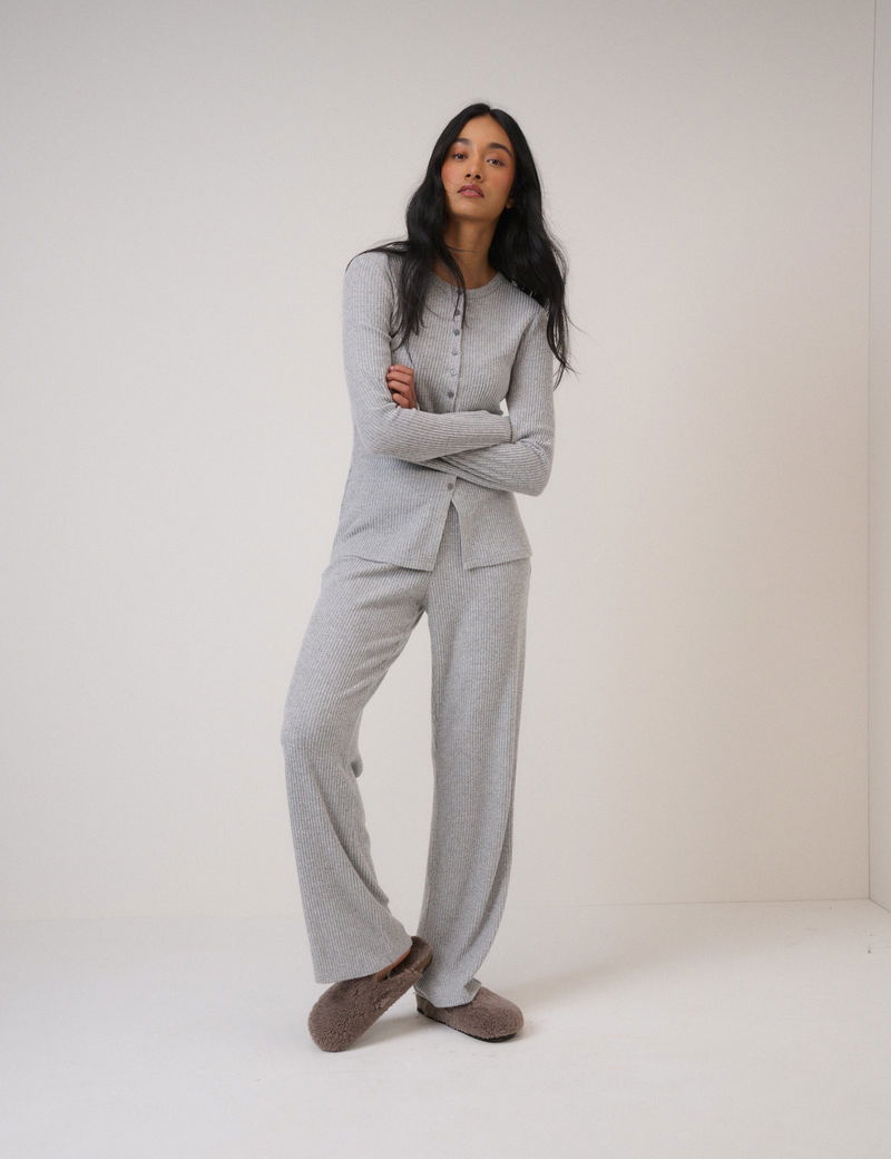 Softly ribbed, this grey cardigan features a round neckline, long sleeves and buttons. It's cut to a slim-fitting, longline silhouette.