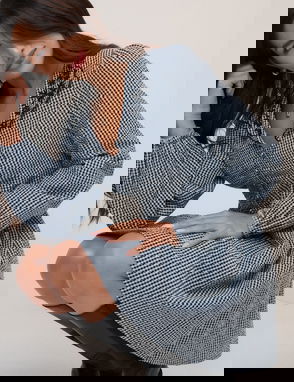 Hebe Puff Sleeve Midaxi Dress In Mono Gingham