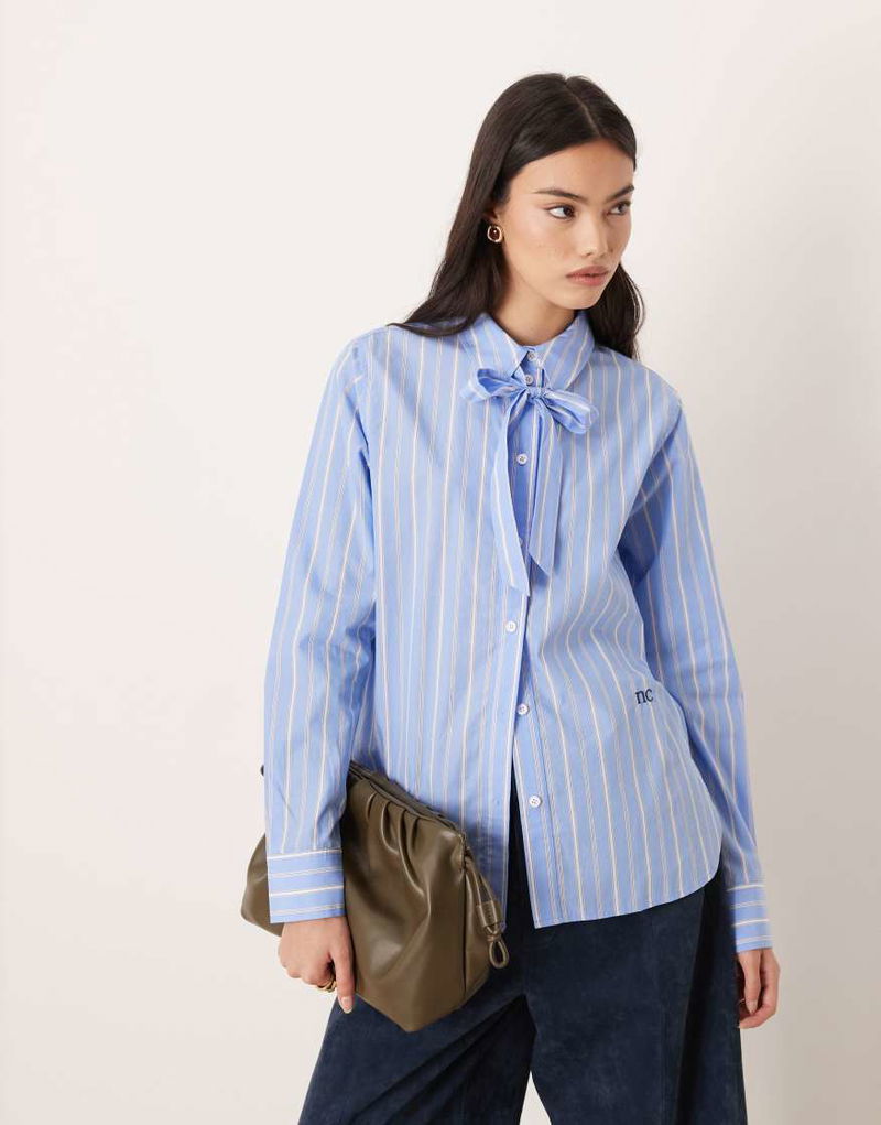 Hepburn Pussybow Shirt In Blue Stripe