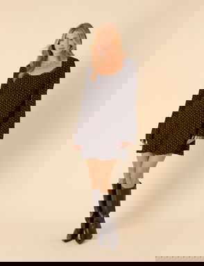 Mini dress, major impact. Round neck Flared sleeves Cut-out back Tie-back fastening Regular fit.