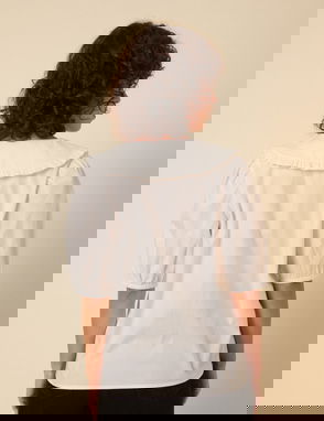 Embroidered collar Tie front Puff sleeves Regular fit.