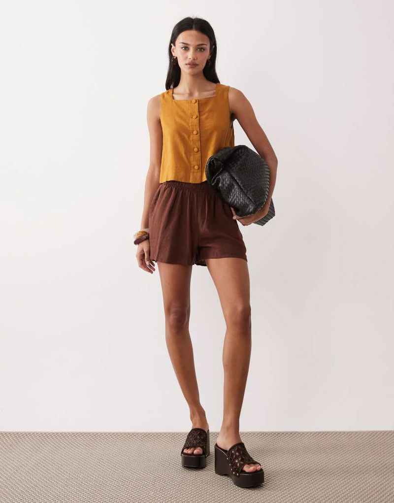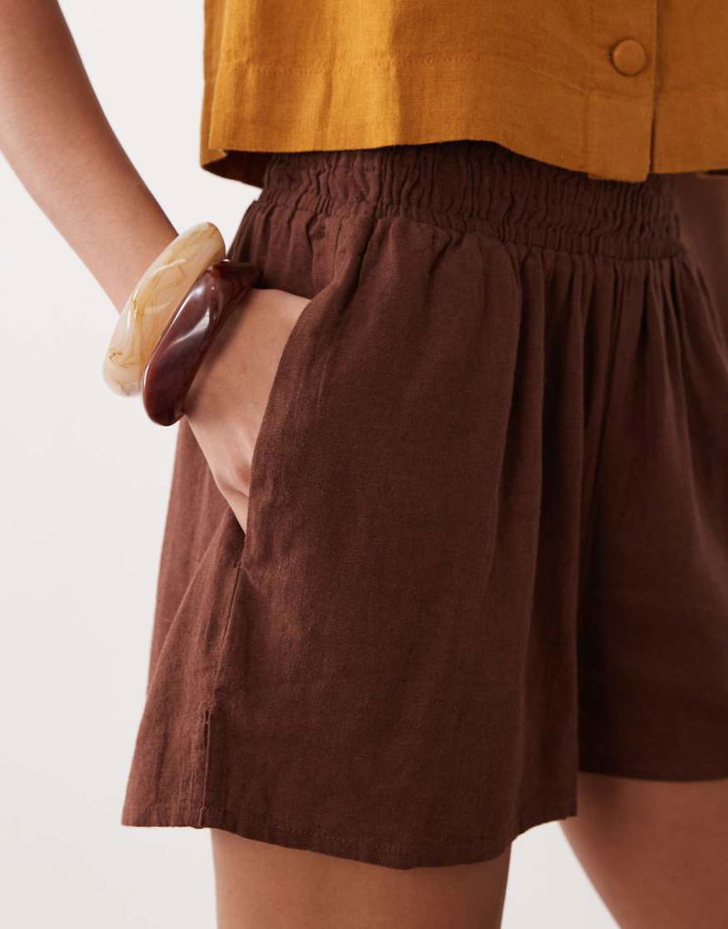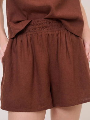 Joppa Linen Blend Shorts In Chocolate Co-ord