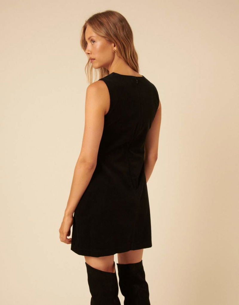 Kendall Embroidered Cord Pinafore Mini Dress In Black