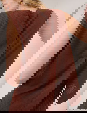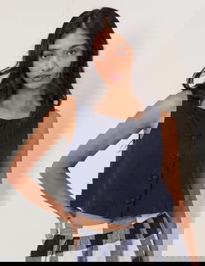 Khaki Green Linen-Blend Ruched Tank