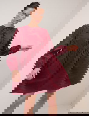 Crafted from soft jersey, this khaki mini dress features a frilled round neckline and long sleeves. Designed with a shirred bodice for the perfect fit, the drop waist falls to a relaxed skirt.