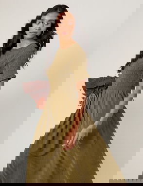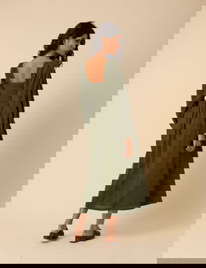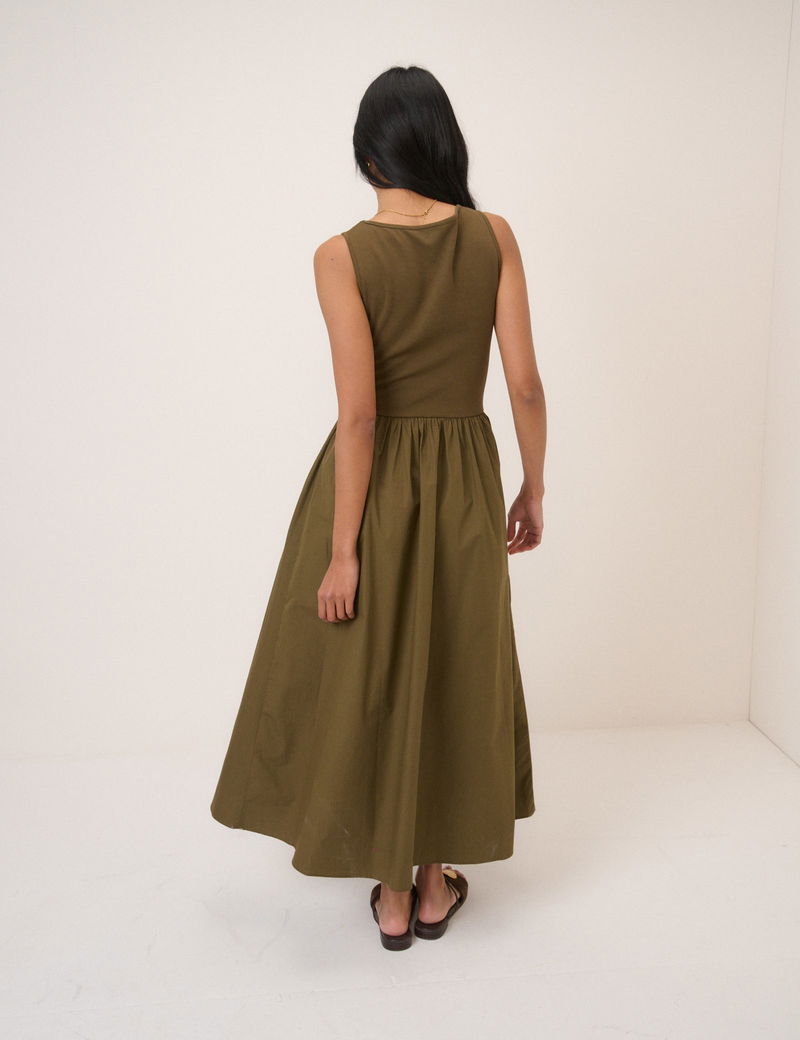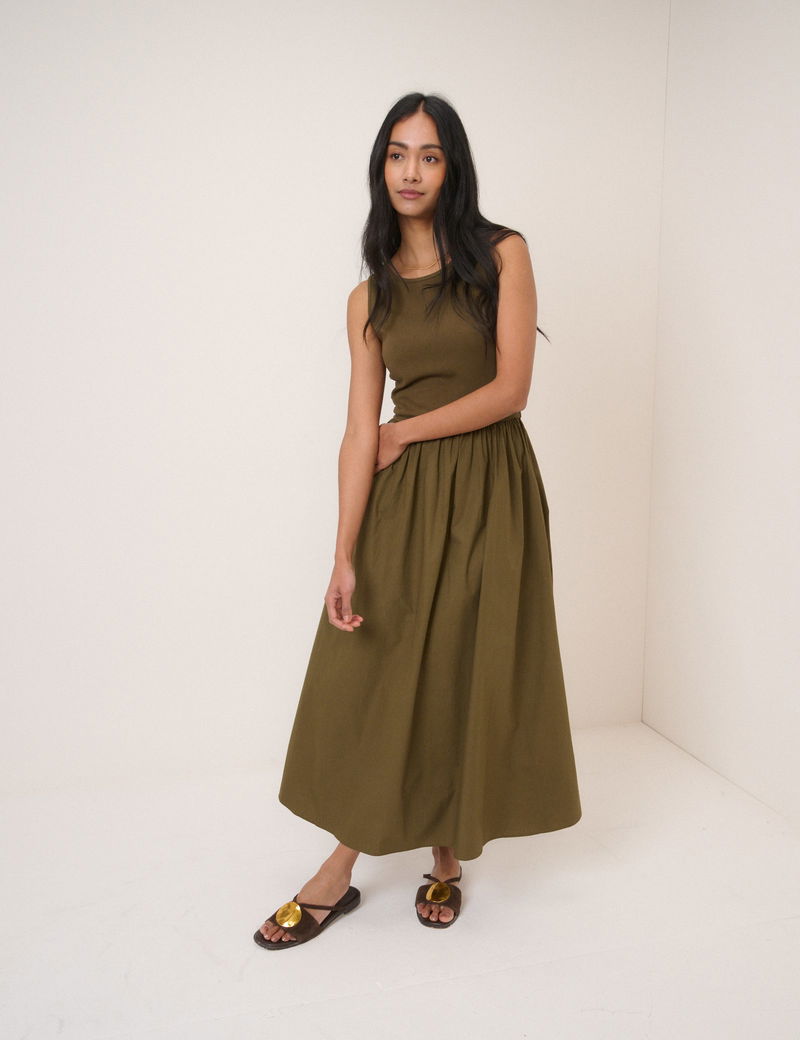 Khaki Sleeveless Drop Waist Vera Midi Dress