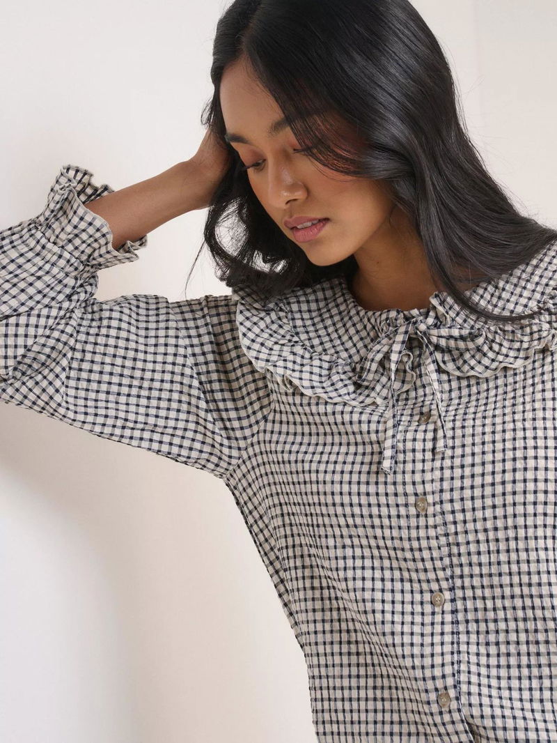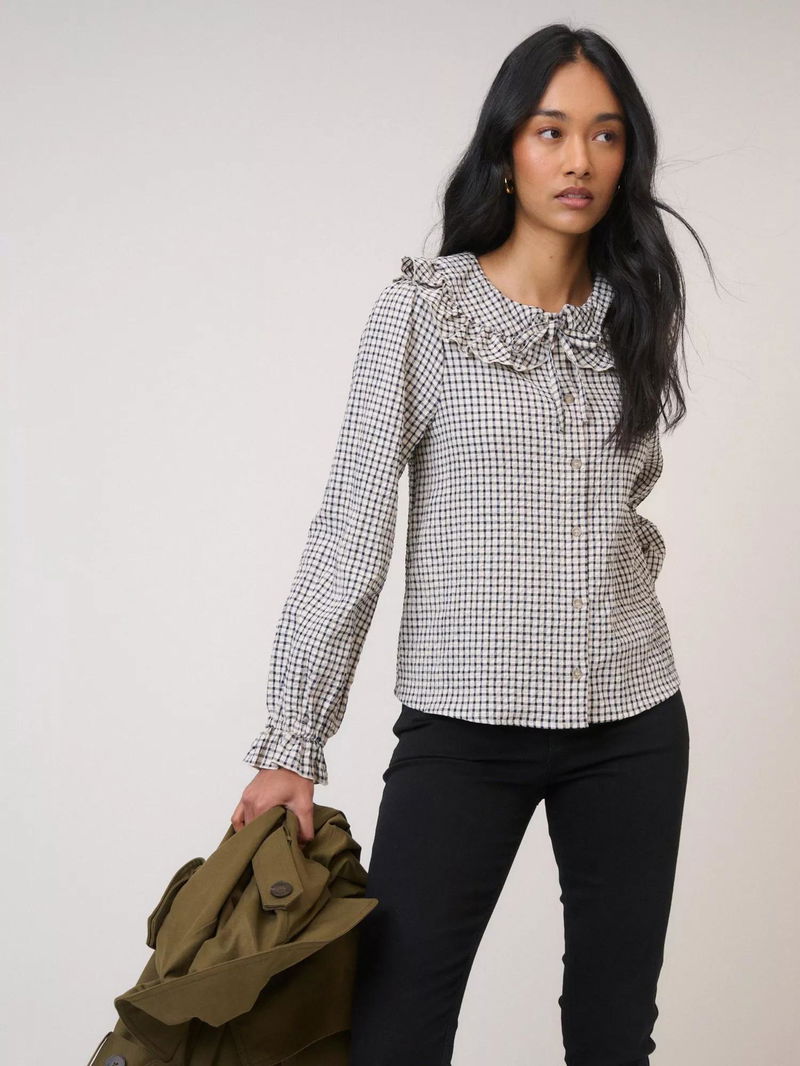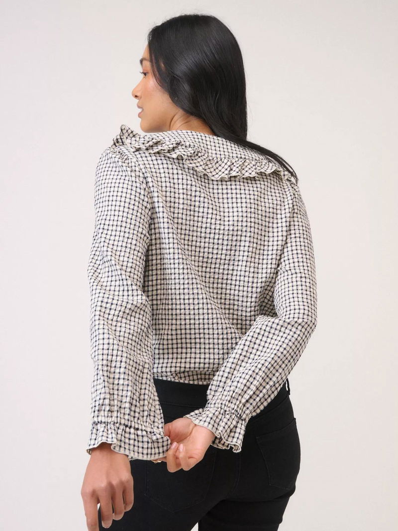 Lawrence Ruffle Collar Check Blouse Containing LENZING™ ECOVERO™ Viscose, White