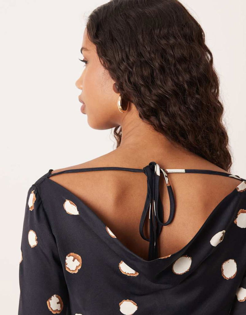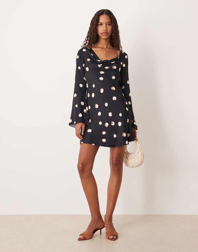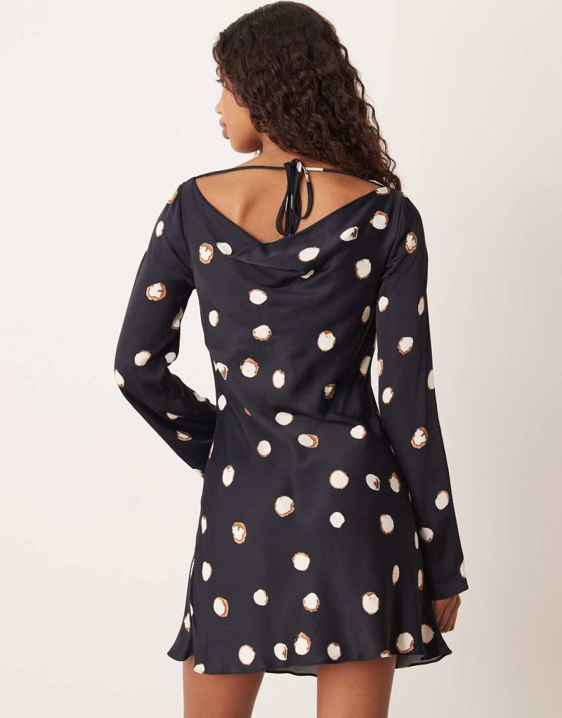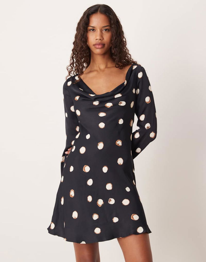Leighton Satin Cowl Neck Mini Dress In Large Polka Dot
