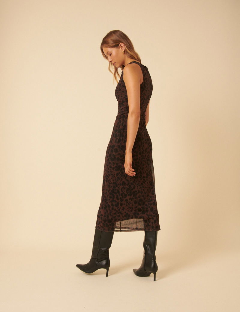 Leopard Print Mesh Morgan Midi Dress