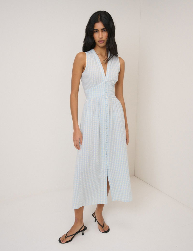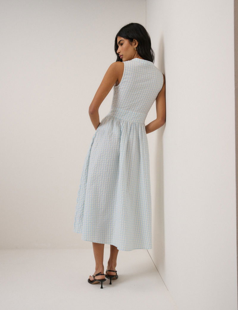 Light Blue Gingham Sleeveless Starlight Midi Dress