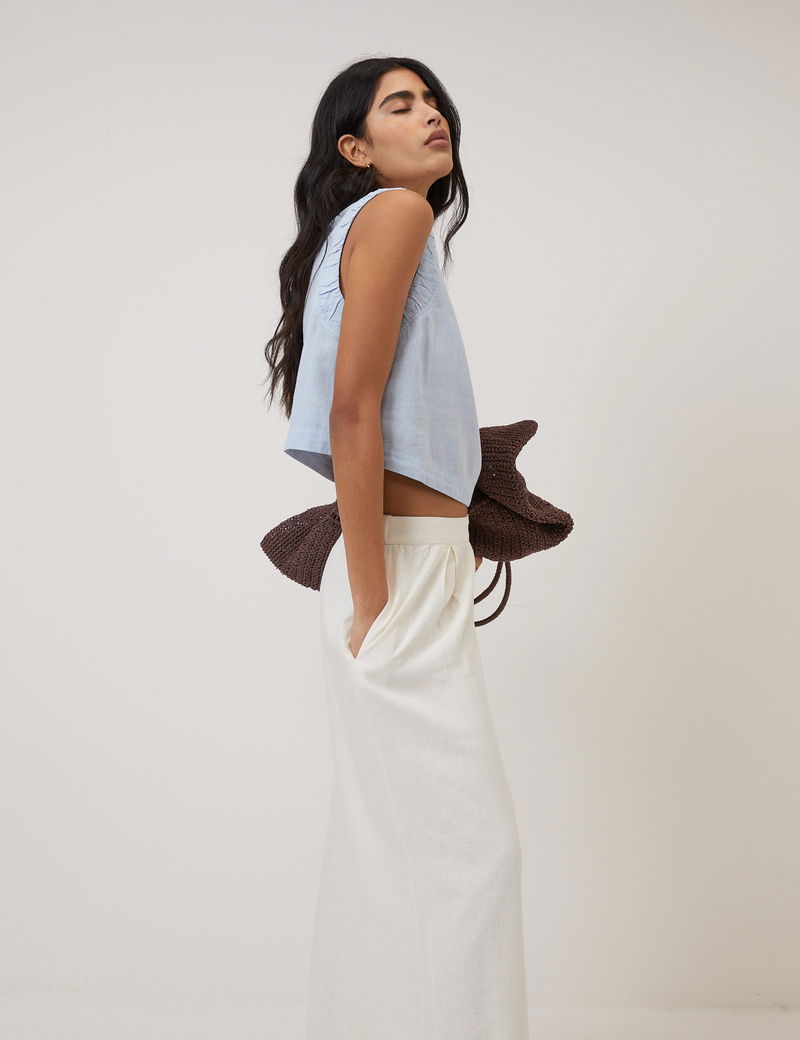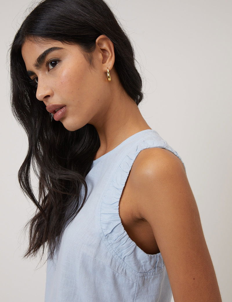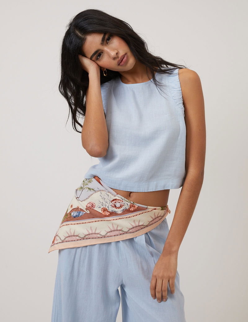 Light Blue Linen-Blend Top