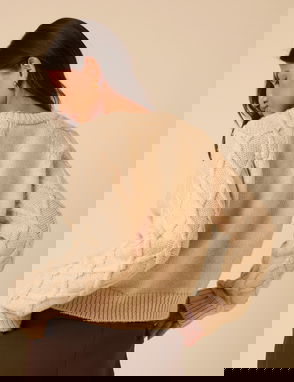 Light Pink Cable Knit Crew Neck Cardigan