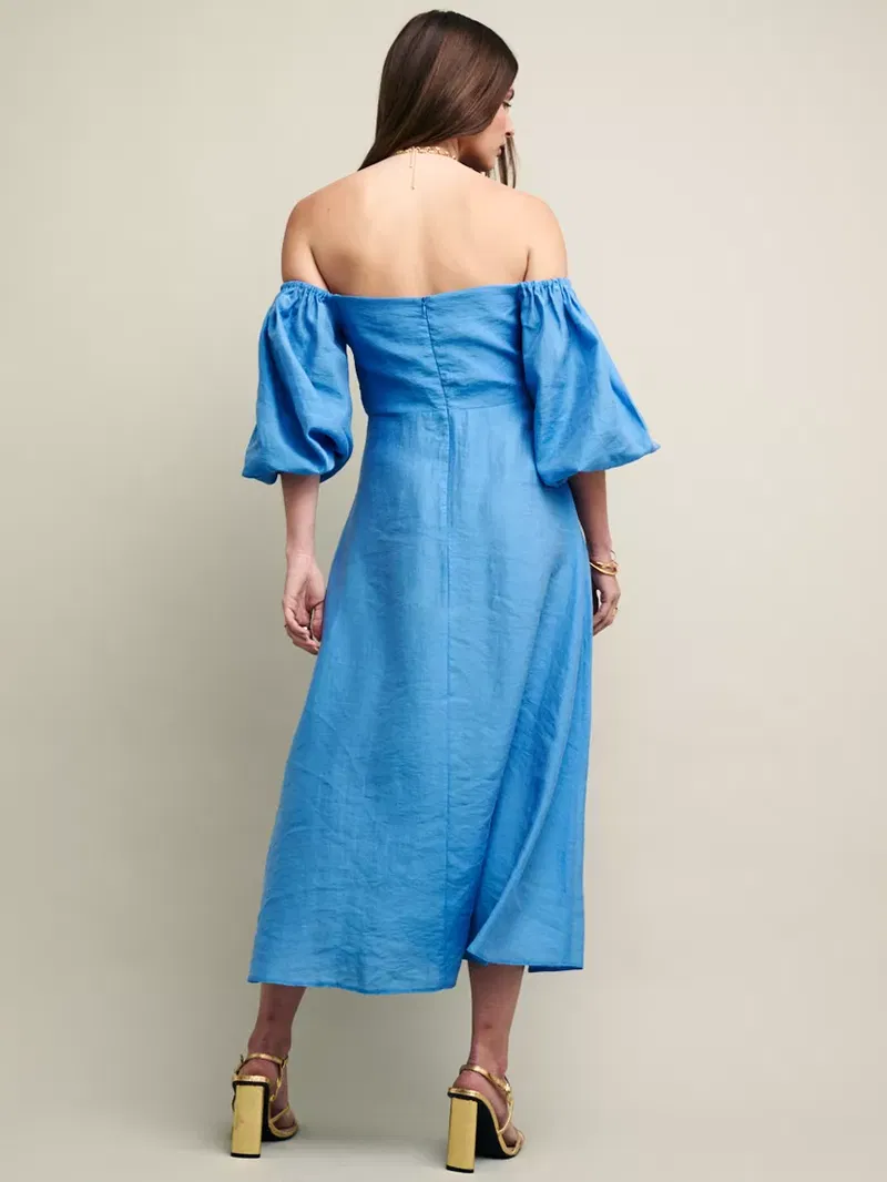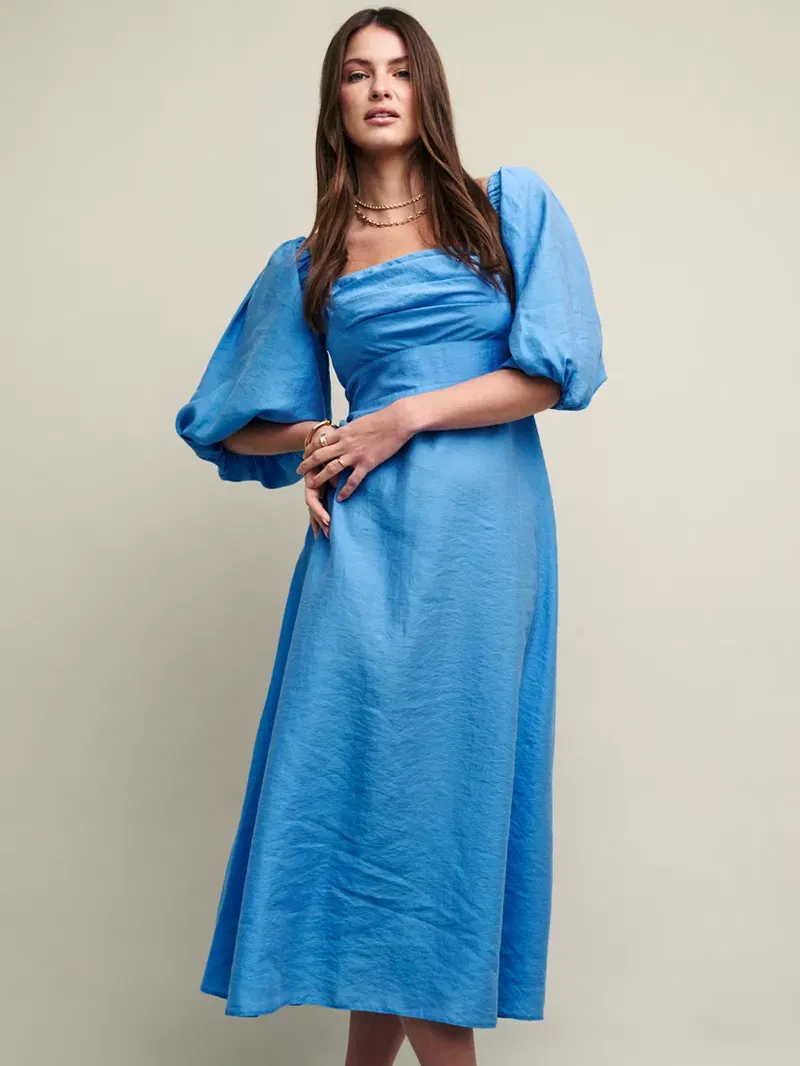 Just stunning. This midaxi is the dress for all those invitations filling up your diary. Cut from a lightly textured fabric, it feels effortlessly floaty. Secondly, you can wear the voluminous puff sleeves on or off the shoulder depending on how you feel that day. We're obsessed.