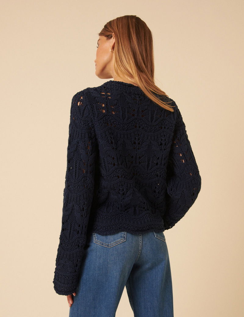 Navy Blue Chunky Pointelle Jumper