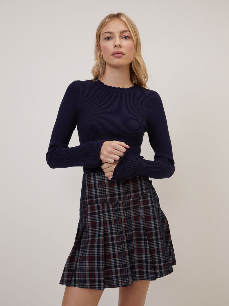 Navy Crochet Trim Knitted Top