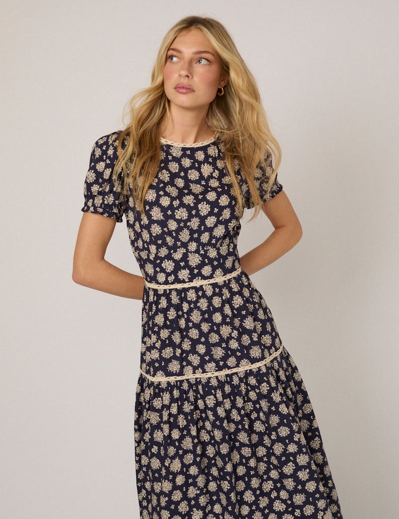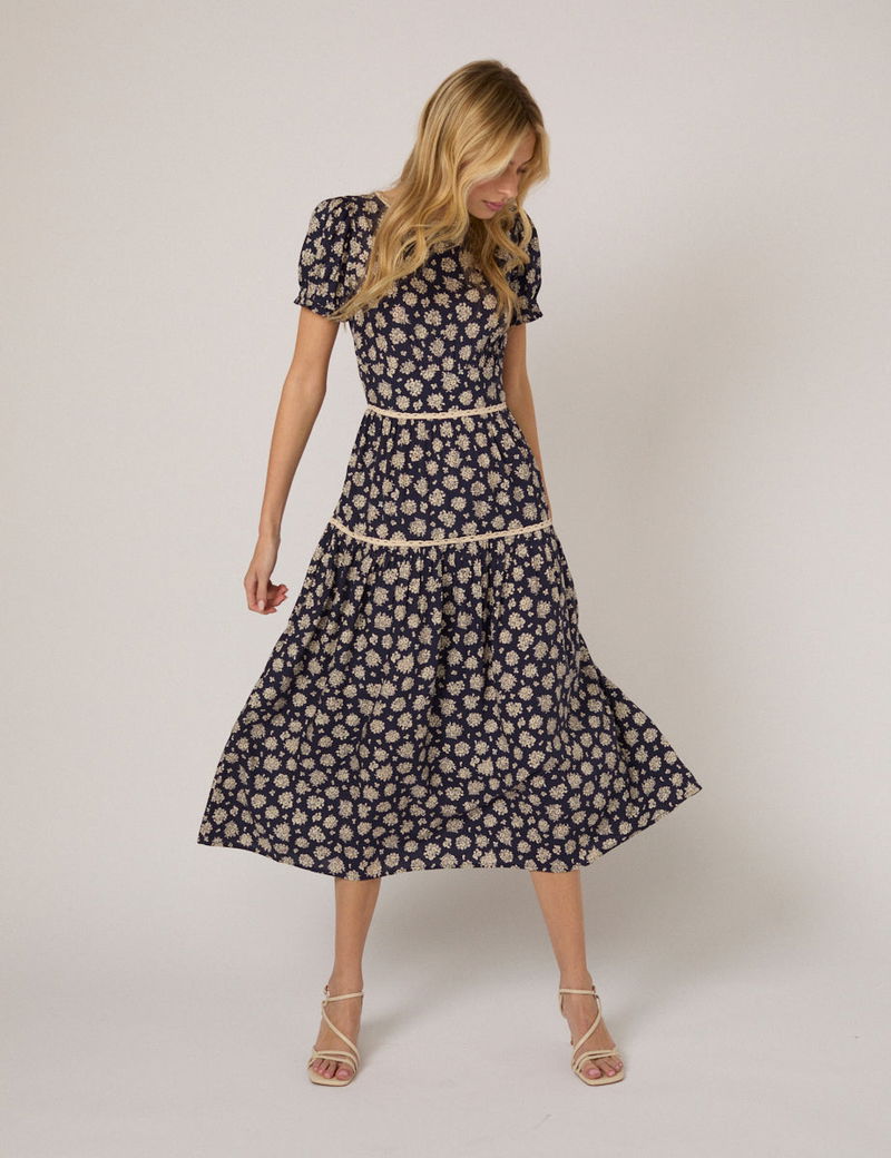 Navy Floral Dara Midi Dress