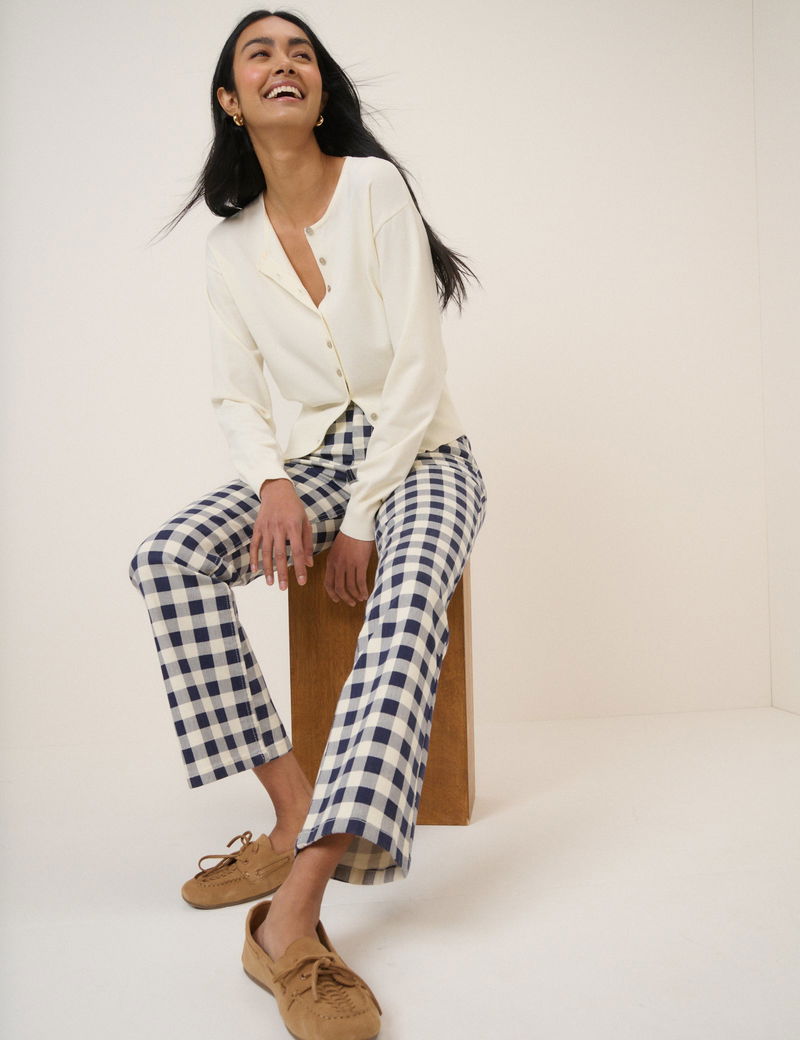 Navy Gingham Kick Flare Jeans
