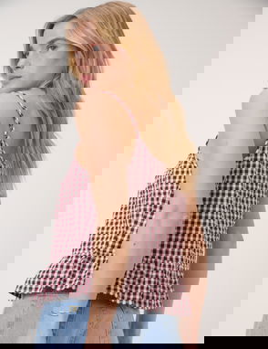 This navy and white gingham top features a square neck with a lace trim, long balloon sleeves and a button front. The front seams run down into a fit-and-flare silhouette, finished with a tie-back detail for the perfect fit.