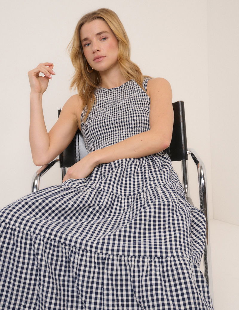 Navy Gingham Sleeveless Charlie Midi Dress