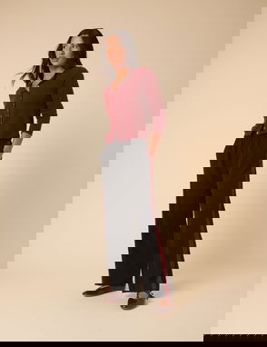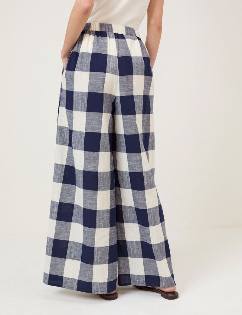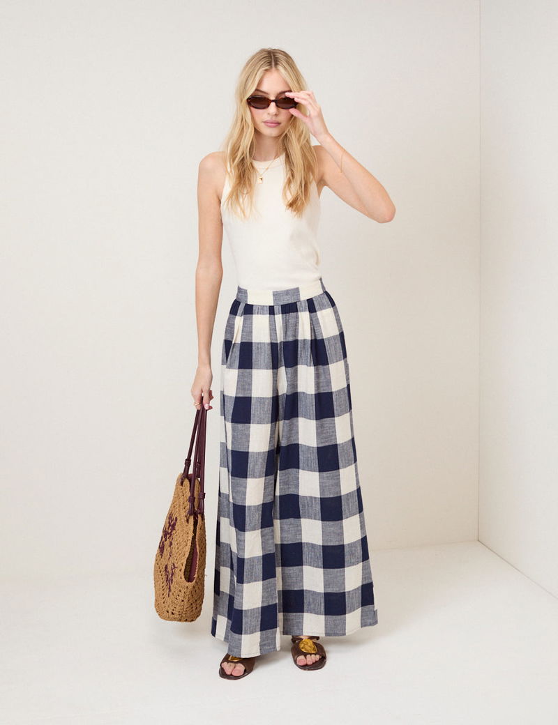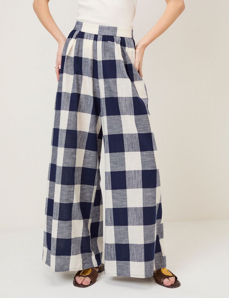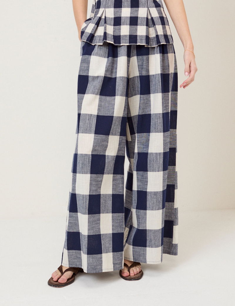 Navy Gingham Wide Leg Trousers