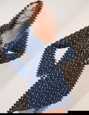 Coming in navy, this soft velvet mini dress features a V-neckline and a bow at each shoulder. Underbust seams shape its bodice before falling to a relaxed skirt.