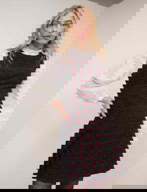 This piece is part of the Nobody’s Child x Lisou Collection, a London-based brand known for statement prints. In a soft wool-blend, this burgundy pinafore dress is crafted with a premium double-faced design, complete with hand-finished seams. It features a low V-neckline and A-line silhouette, and it's finished with a pink and plum checkerboard lining.