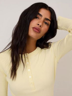This piece is part of the Nobody’s Child x Lisou Collection, a London-based brand known for statement prints. This green and black striped top features a round neck, long sleeves and buttons. It’s designed in a fine rib and cut to a longline slim fit.