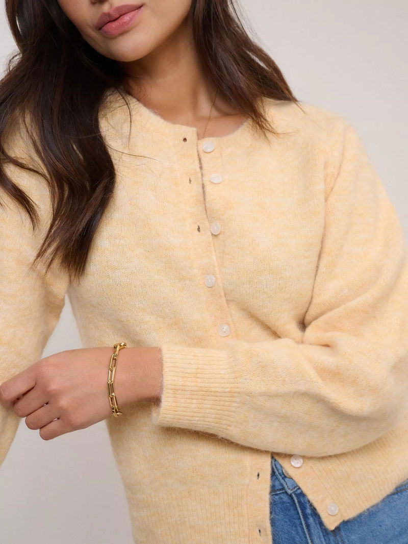 Pearlescent Button Wool Blend Cardigan, Yellow