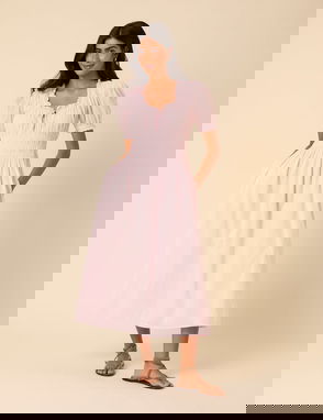 Pink Drop Waist Victoria Midi Dress