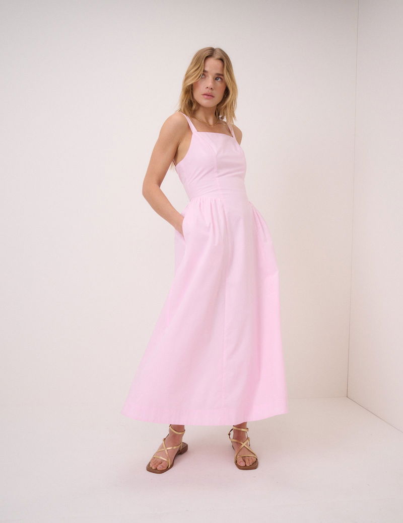 Pink Square Neck Brielle Midi Dress