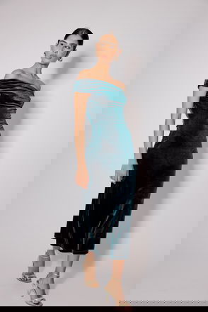This soft velvet maxi dress features an off-the-shoulder design. We love its effortless, slim-fit silhouette that drapes over the body. Off-the-shoulder design with concealed zip fastening.