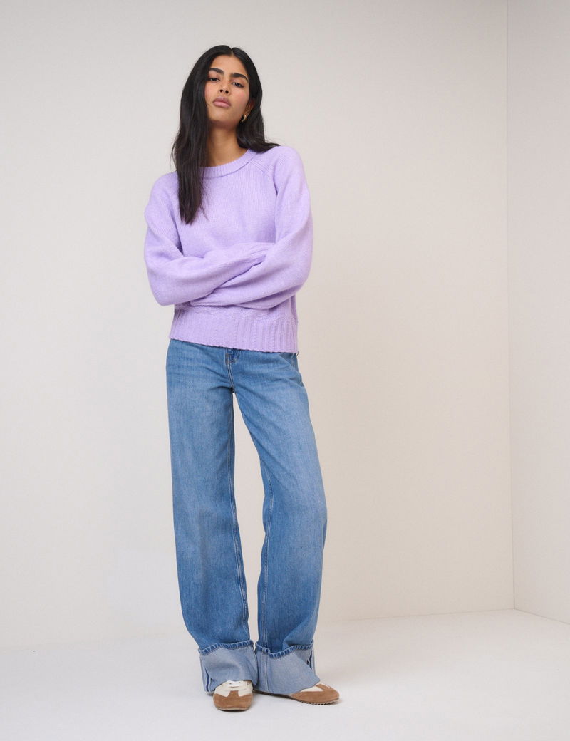 This lilac jumper features a round neckline and long sleeves. Cut to a relaxed fit, the keyhole back is finished with a tie-fastening.