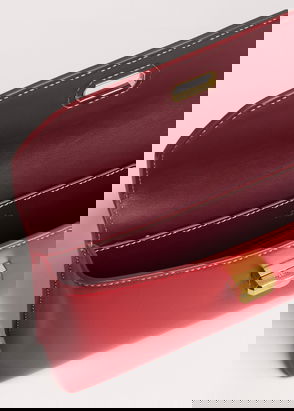 Your go-anywhere tote bag. Whether heading to the beach or a stroll through the markets, this soon-to-be staple comes in red stripes with burgundy straps.