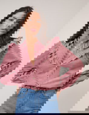 In soft cord, this red blouse features a Peter Pan collar, long balloon sleeves and underbust seams. Cut to a slim fit, it's finished with a button front. Don't miss the tie-back detail for the perfect fit.