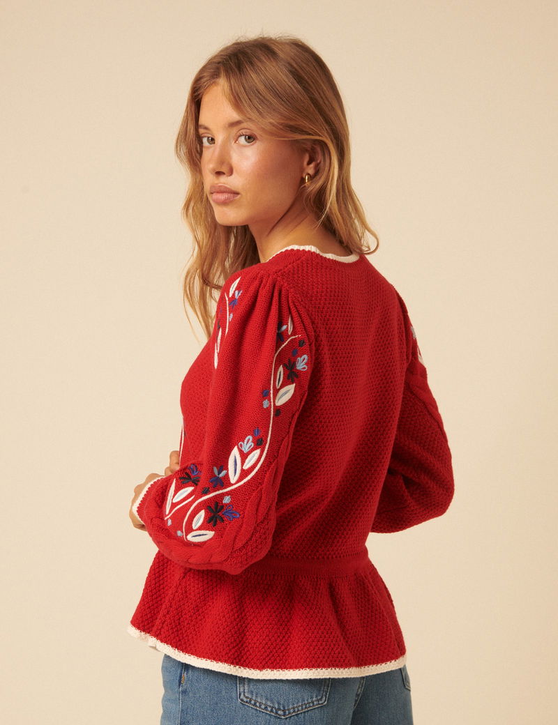 Red Floral Embroidered Cardigan