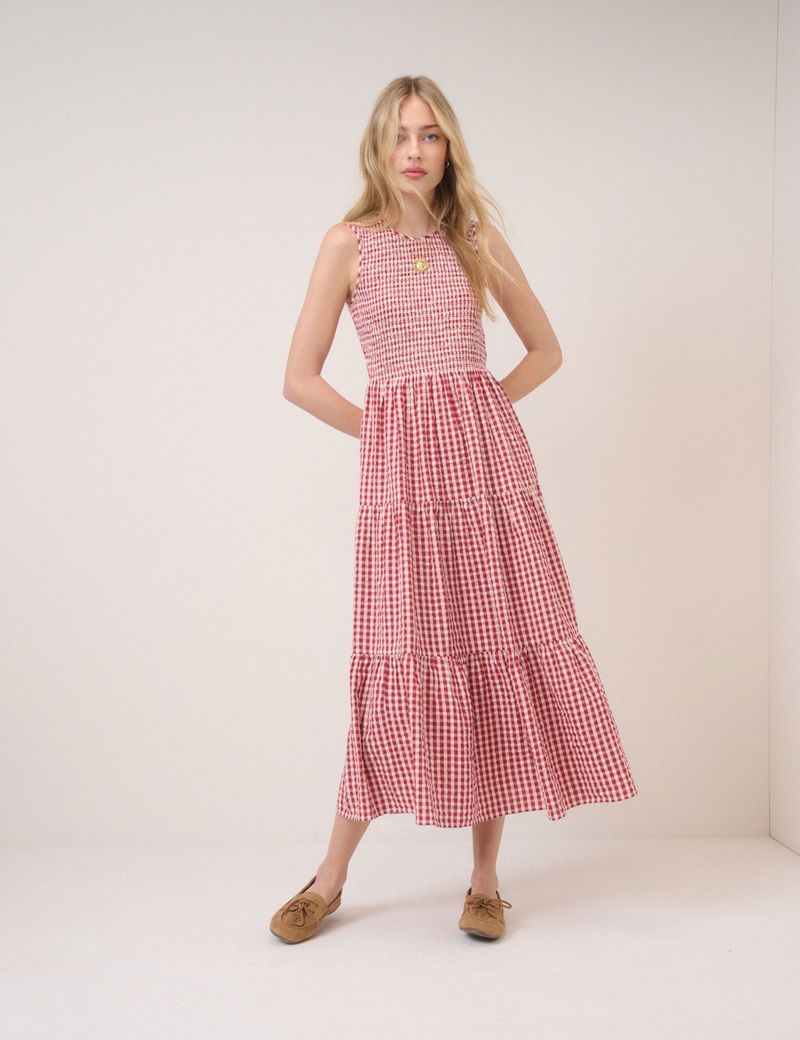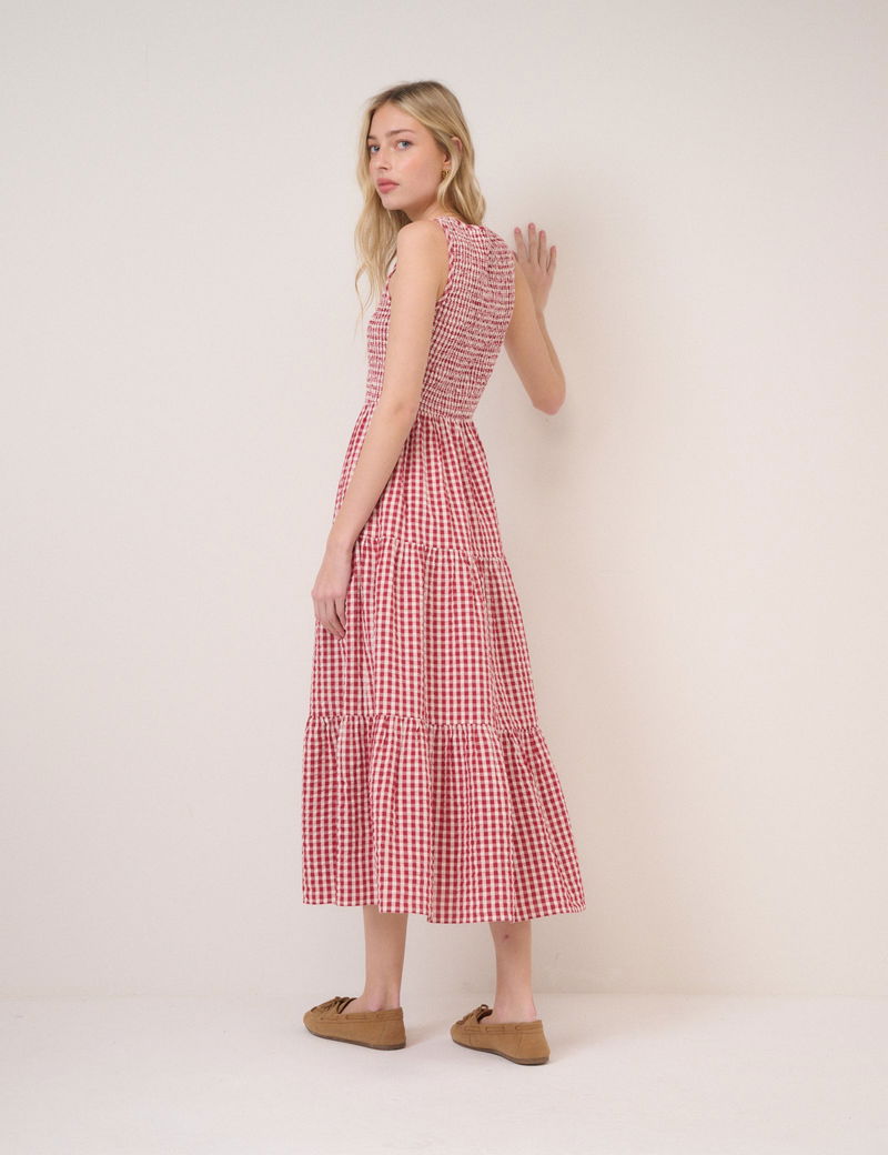 Red Pinstripe Sleeveless Charlie Midi Dress