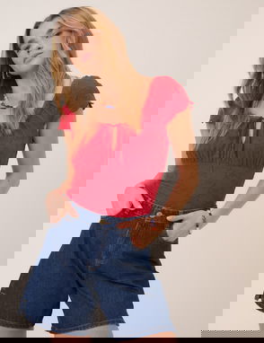 The summer essential. In a red tile print, this cropped bandeau top will have you showing up in style. We love its all-over shirring for the perfect fit. Wear with the matching skirt.