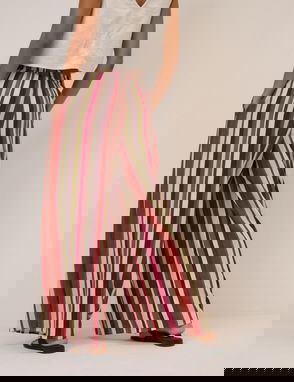 High rise Elasticated drawstring waist Side pockets Contrast side stripes Wide leg.