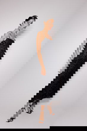 Introducing Sadie. This classic midi dress is soon-to-be trending. We especially love the voluminous puff sleeves and swishy skirt that skims the body beautifully. Style with barely-there heels to your next event.