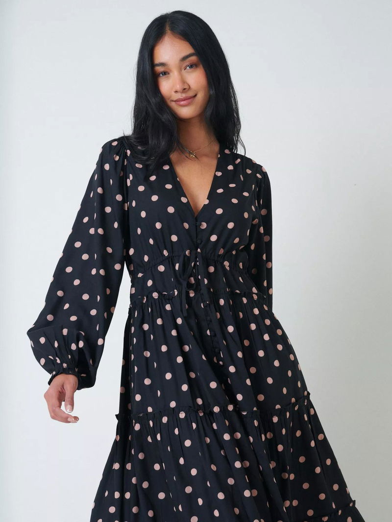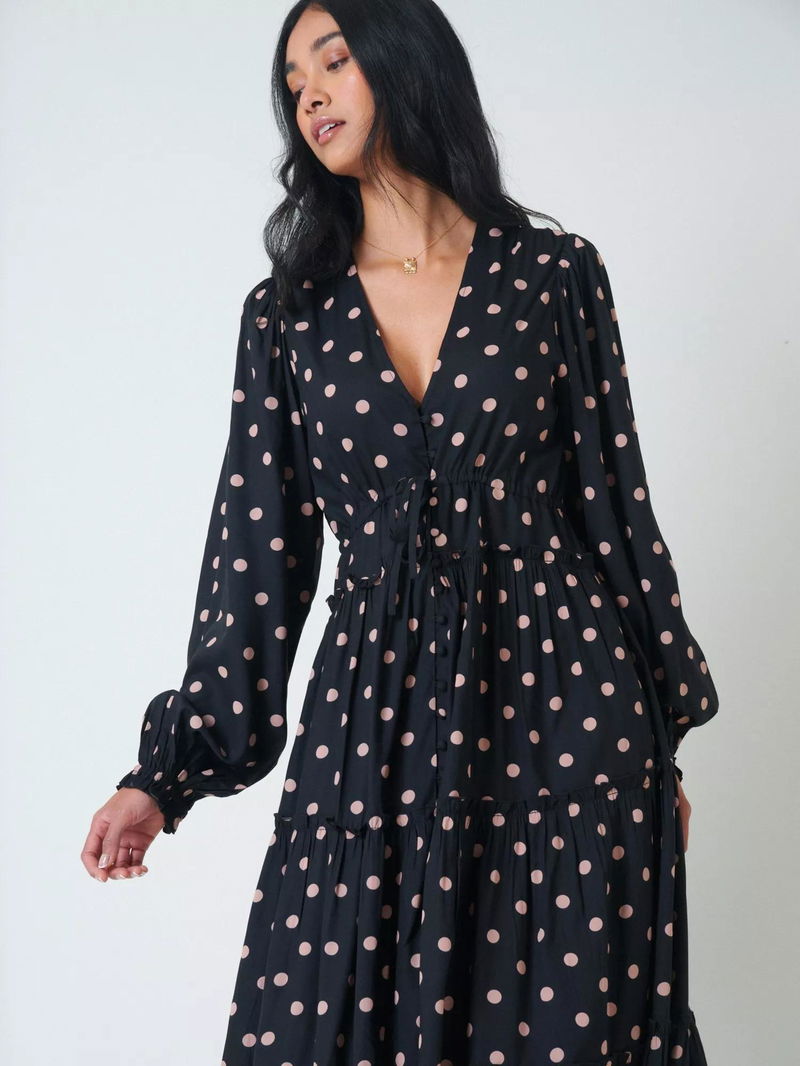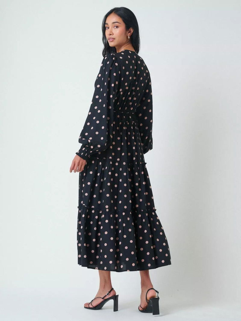 Sofia Polka Dot Midi Dress Containing LENZING™ ECOVERO™ Viscose, Black/Pink