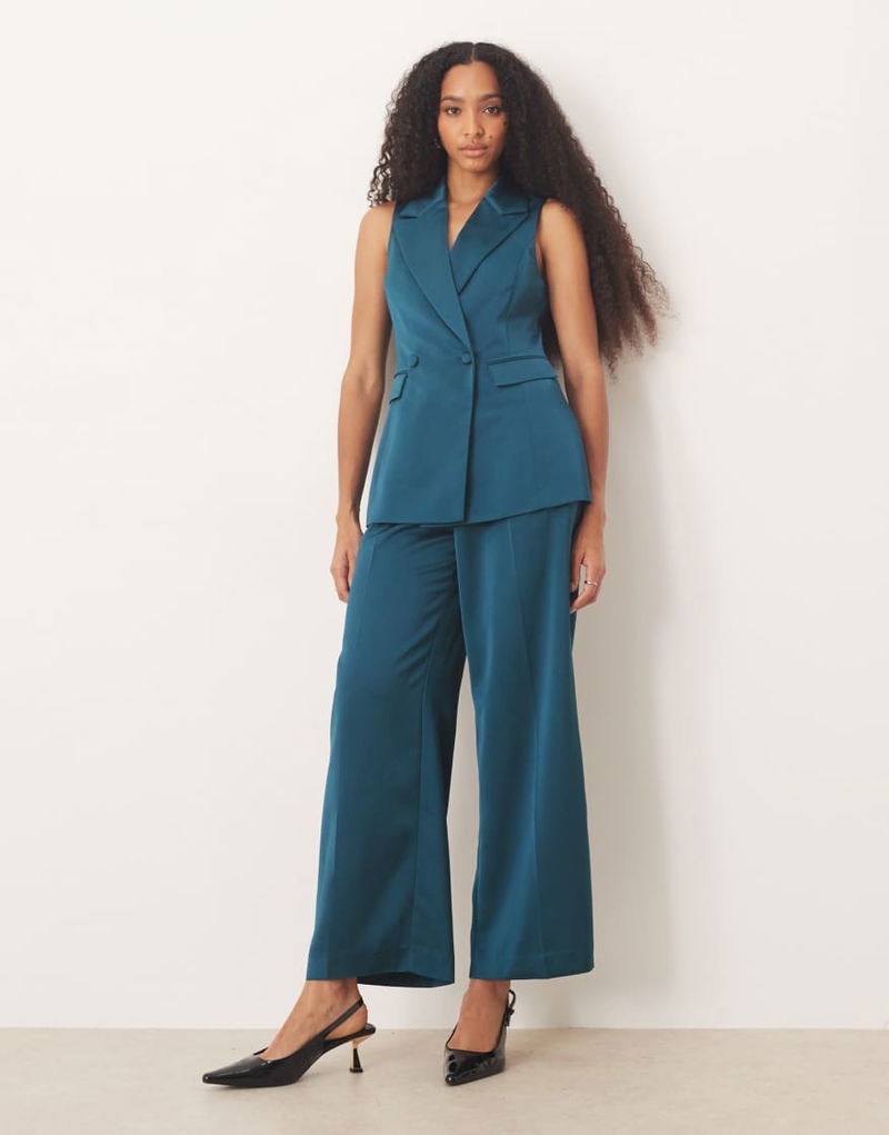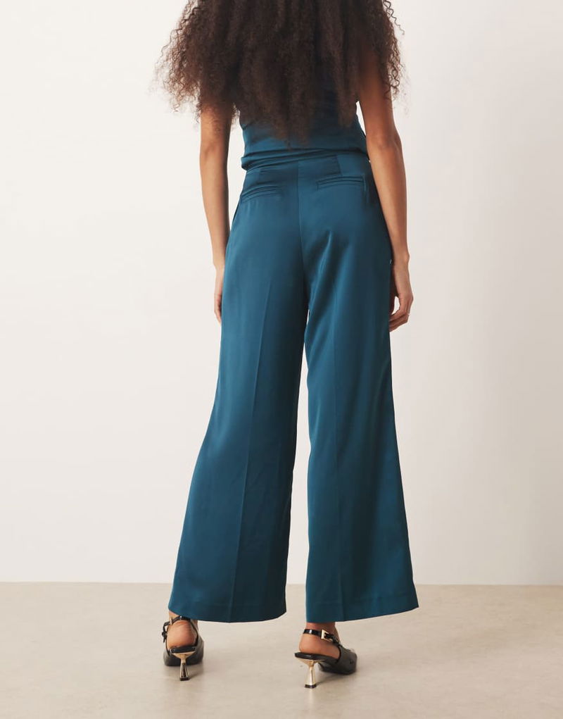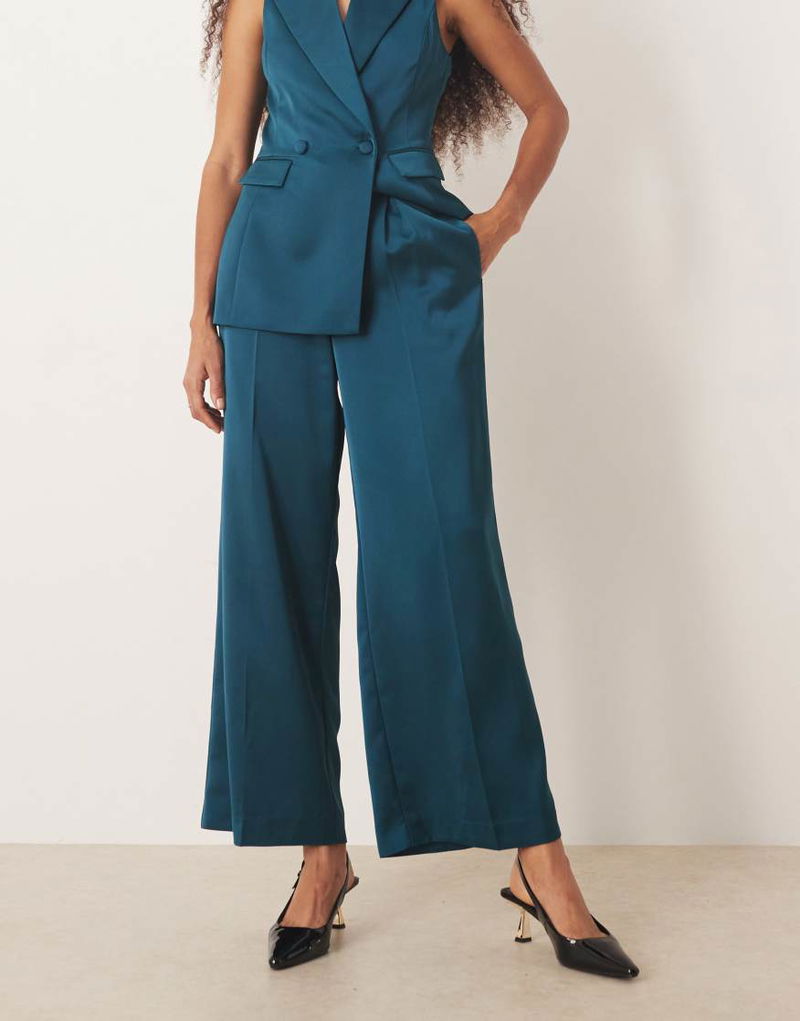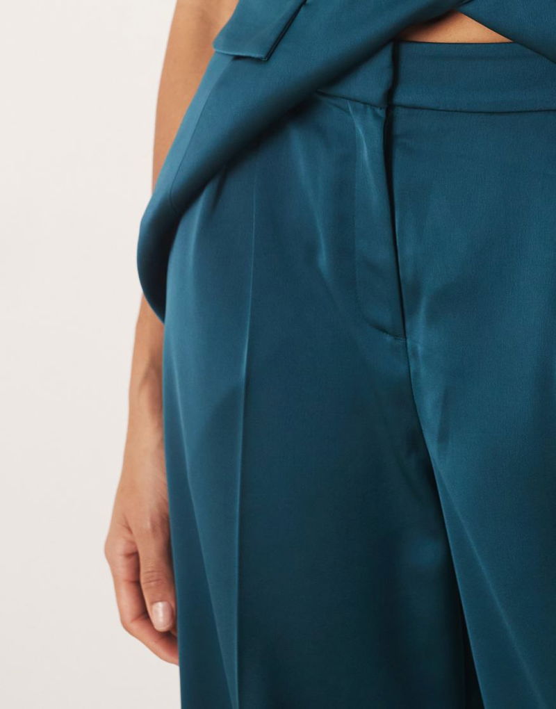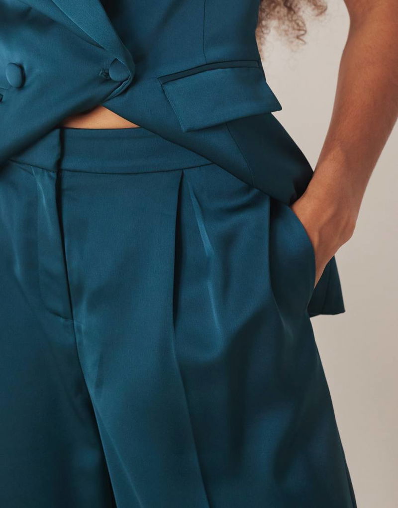 Sorley Satin Wide Leg Trousers Co-ord In Dark Green