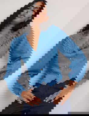 Oh so breezy. We love the long balloon sleeves and elegant square neckline on this blouse. The elasticated cuffs and trio of ties are the perfect finishing touches. Style with everything you already own.