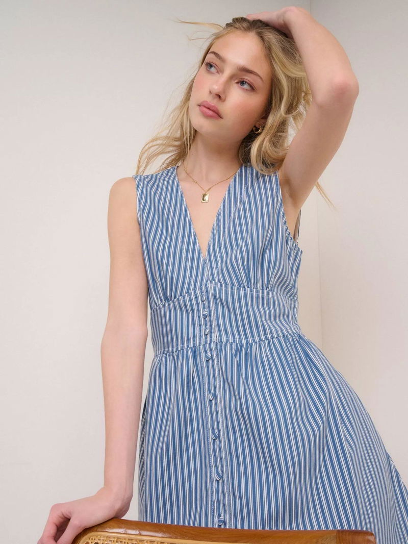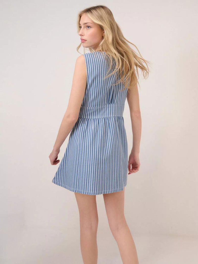 Starlight Sleeveless Pinstripe Denim Mini Dress, Blue/White