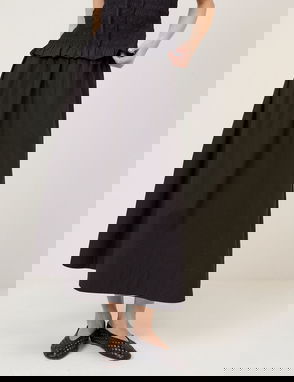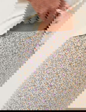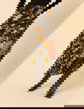 Summer tiered linen skirt in lemon scenic print. Tiered design. All-over print. High rise. Regular fit.