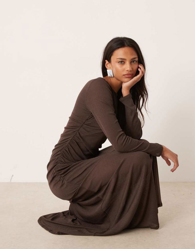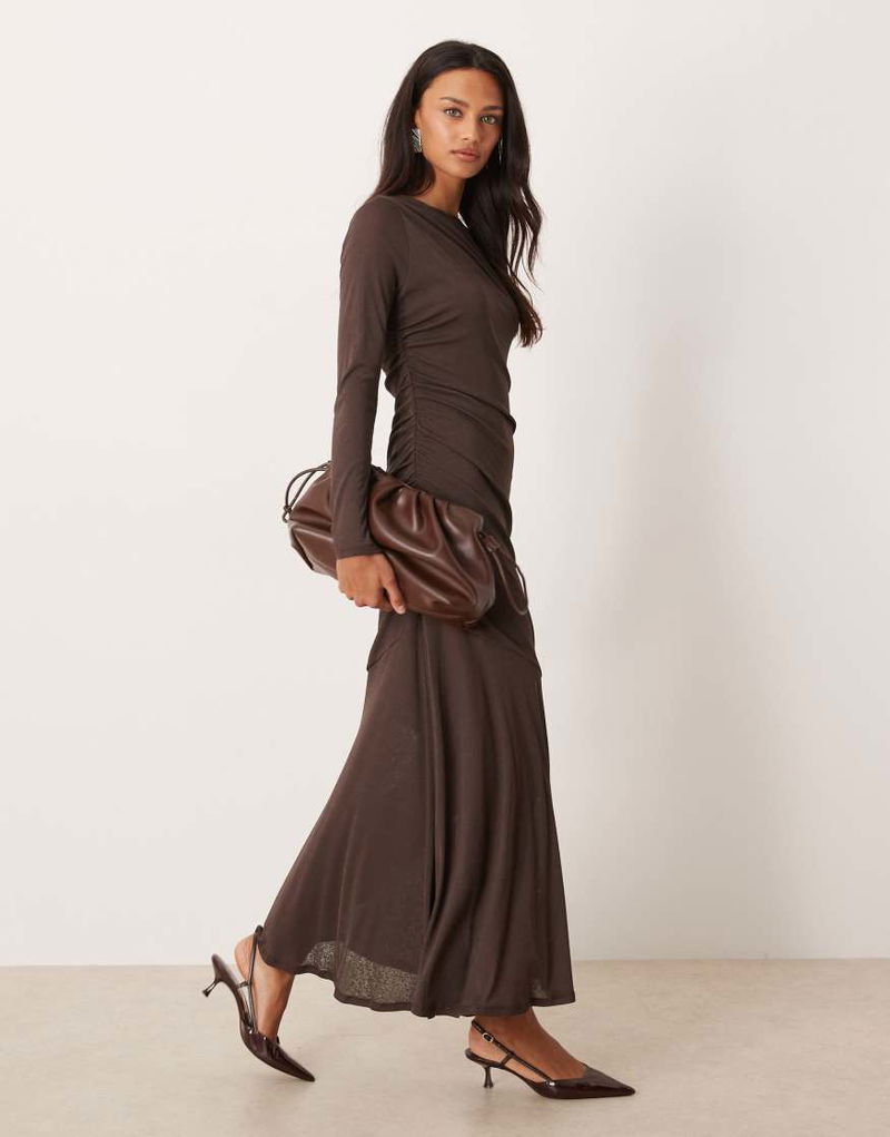 Tallulah Jersey Ruched Long Sleeved Midi Dress
