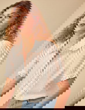 Towan Sailor Collar Floral Denim Blouse, Denim