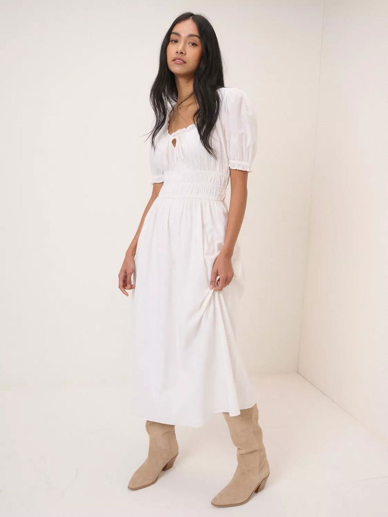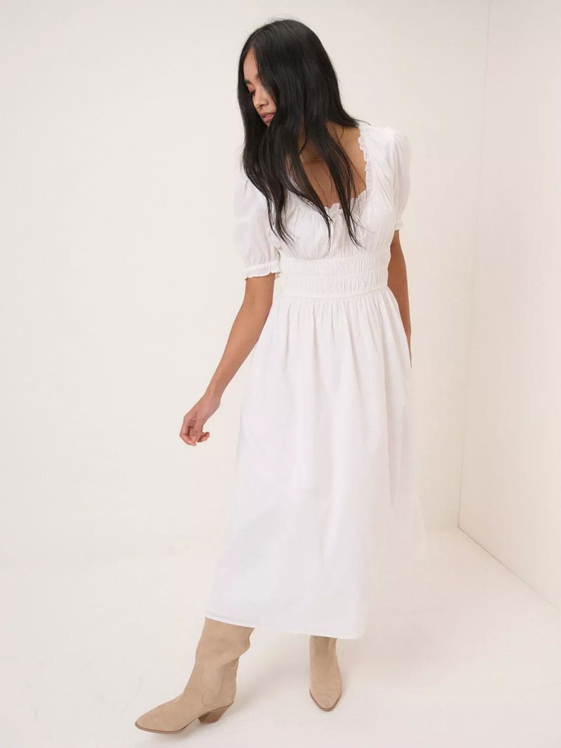 Tula Square Neck Puff Sleeve Cotton Midi Dress, White