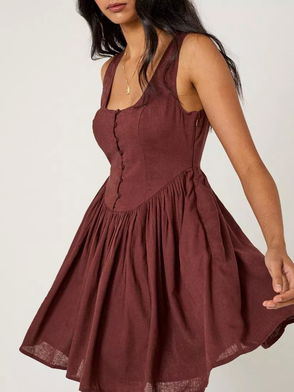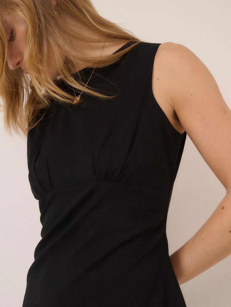 Crafted from a crisp cotton and linen blend, this little dress features a round neckline and a sleeveless cut. Cut to a close fit, the empire waist shapes and flatters the body.